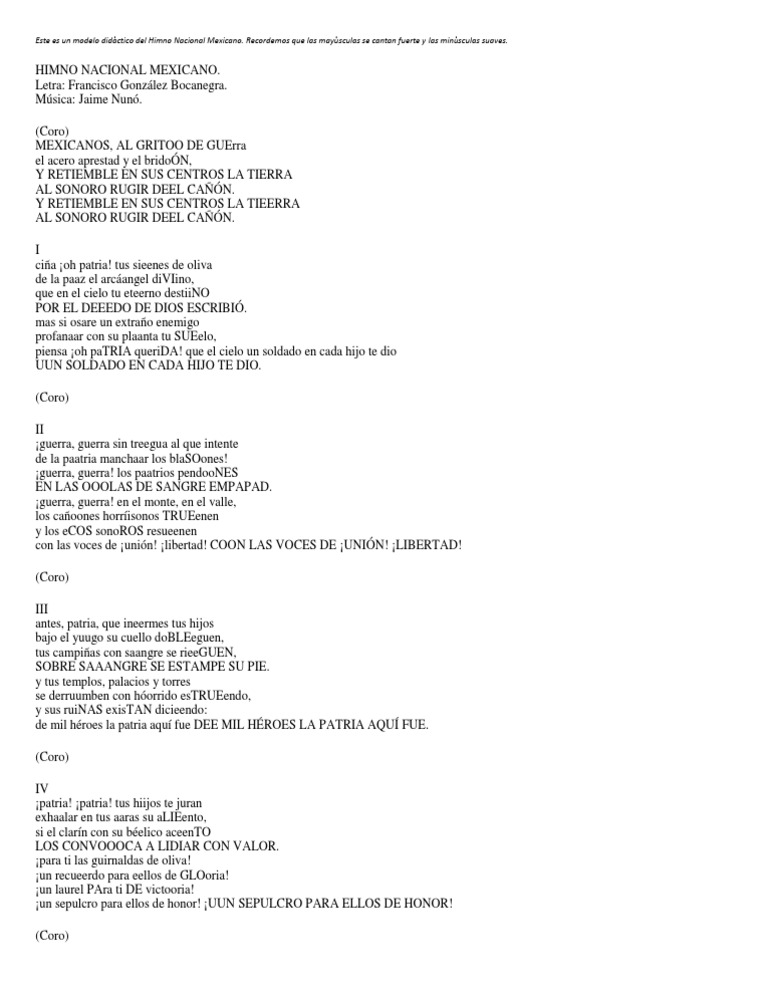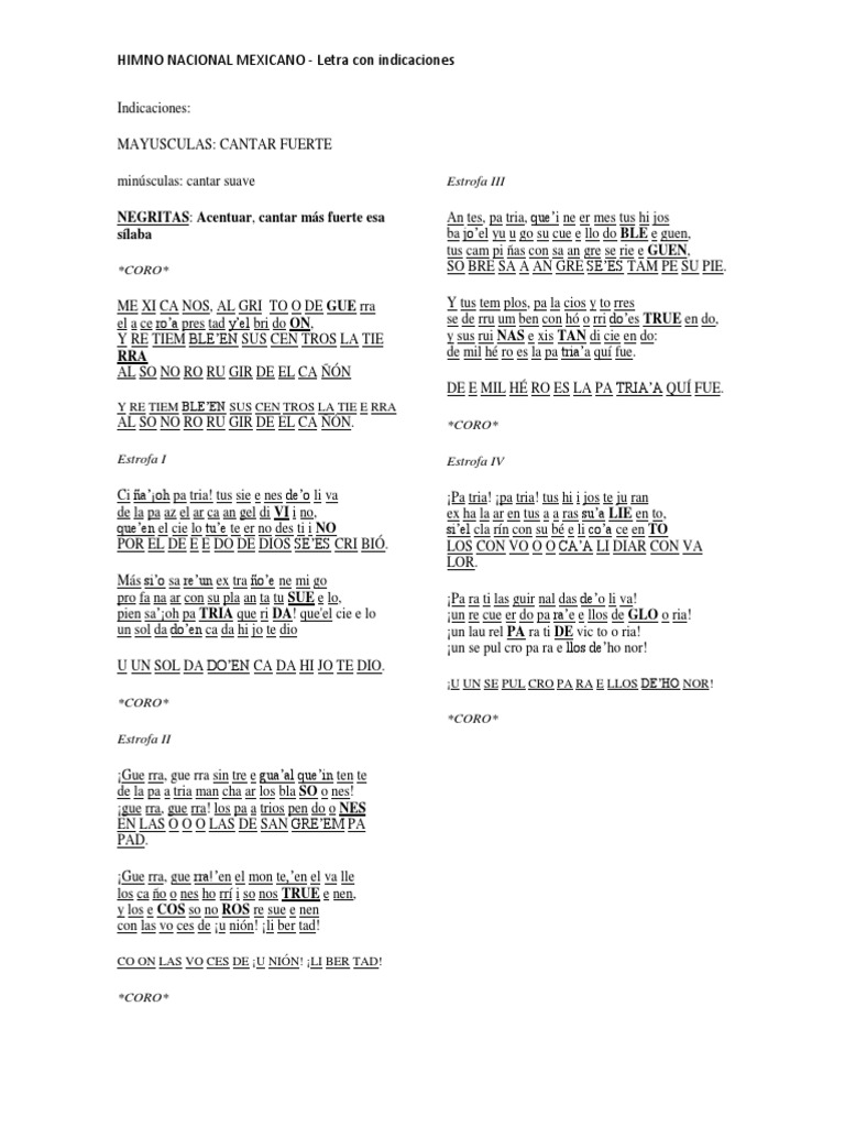 Himno Nacional Mexicano Letra Escolar - LETRA HIMNO NACIONAL MEXICANO | Letra himno nacional ... : Himno nacional mexicano, nahuatl languages: